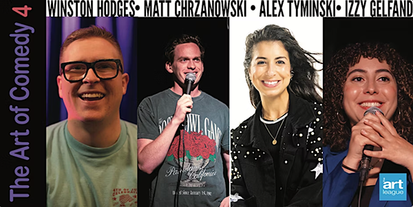 Enjoy a night of comedy in the new Art League space at Muse. Featuring traditional stand up from Matt Chrzanowski, Alex Tyminski, and Izzy Gelfand and an improvisational set from Winston Hodges.