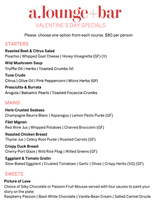 Royal’s Valentine menu also includes special offers on sparkling wines.